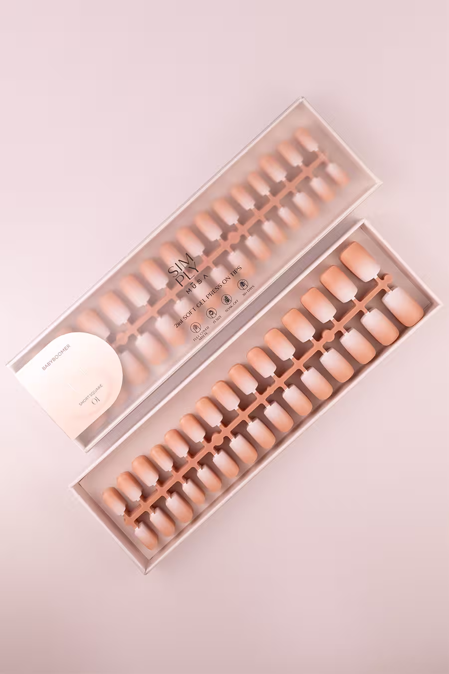 Simply Musa garantiza calidad profesional y comodidad en cada aplicación. Estas tips press on baby boomer cuadrada corta están diseñadas para mujeres prácticas que buscan resultados impecables con el mínimo esfuerzo. El diseño preformado ofrece precisión, elegancia y facilidad de uso.