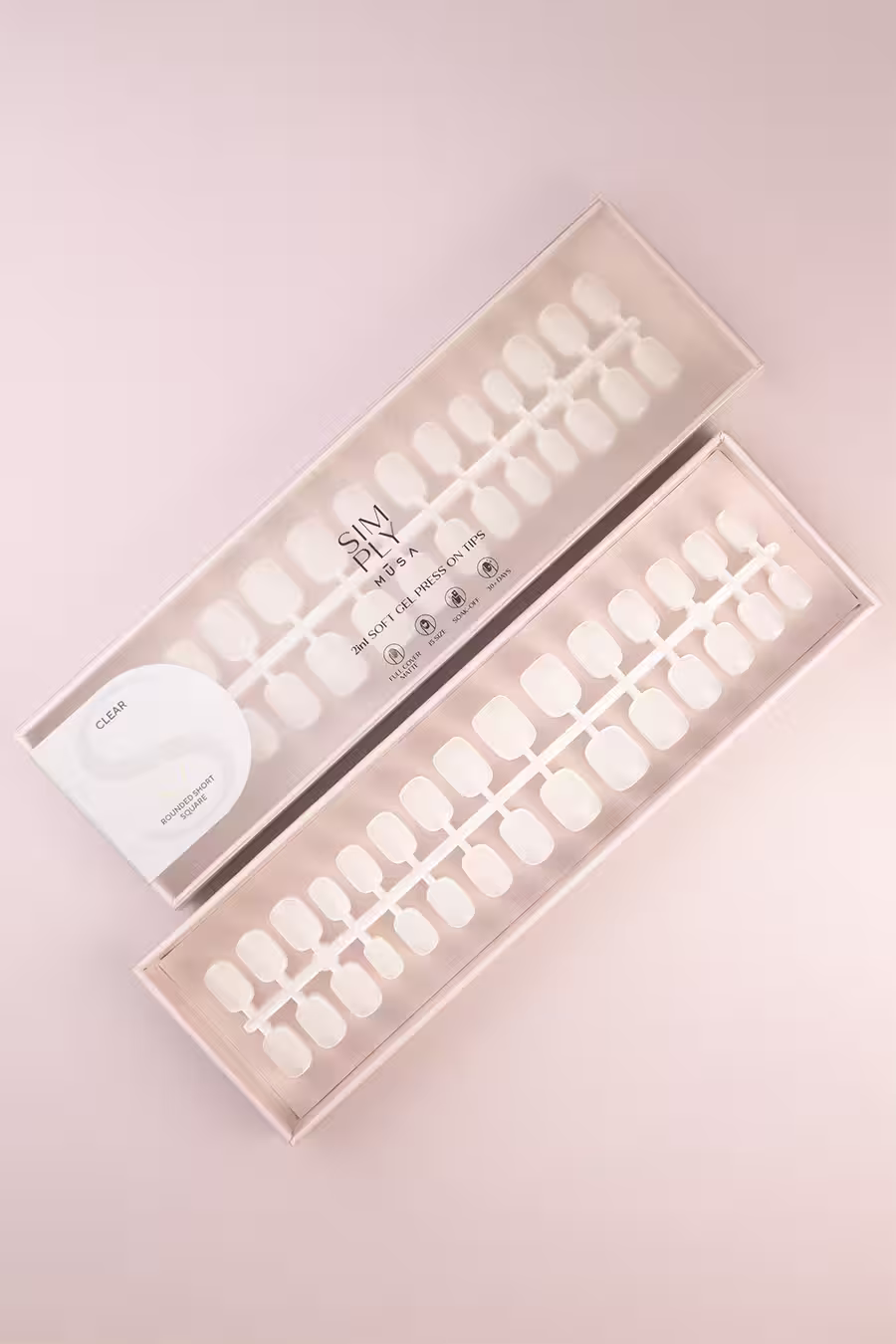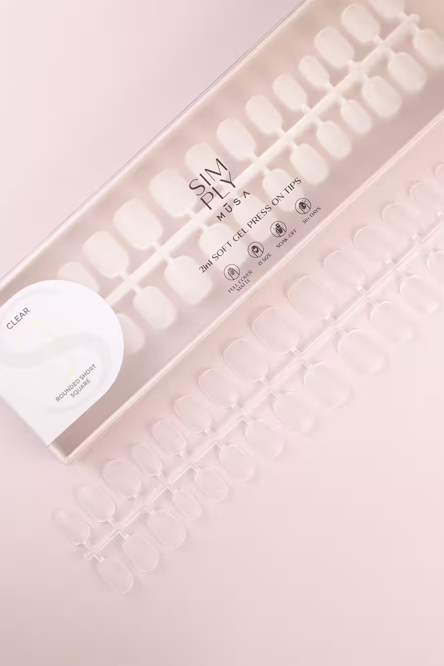 Los tips soft gel cuadrada corta clear de Simply Musa combinan lo mejor del diseño ergonómico con la comodidad de una aplicación rápida. Su forma cuadrada con bordes redondeados aporta una estética limpia, natural y muy versátil, ideal tanto para el día a día como para lucir una manicura más formal. Gracias a su longitud corta y su estructura equilibrada, se adaptan cómodamente a la uña natural, proporcionando un ajuste seguro sin necesidad de limado excesivo. El acabado full cover transparente permite decorarlas a tu gusto o dejarlas al natural con un toque brillante y limpio.
