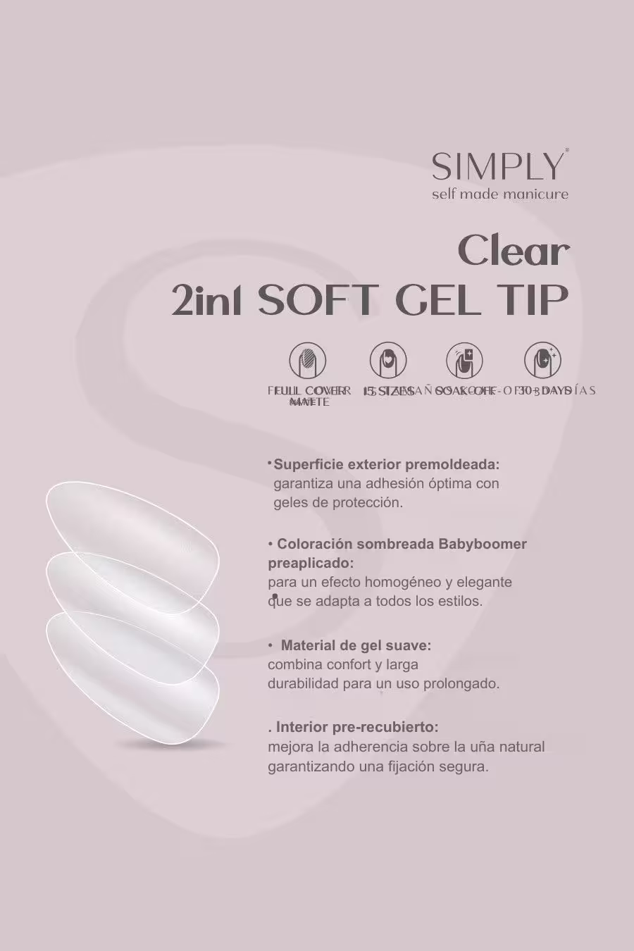 • Material: Soft Gel – flexible, cómodo y resistente.