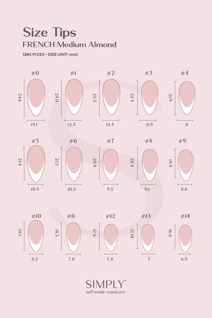 Tips Soft Gel French Almendra Media 01 Nude. Manicura francesa de salón en casa. 240 tips duraderos y listos para aplicar. Diseño elegante y natural.