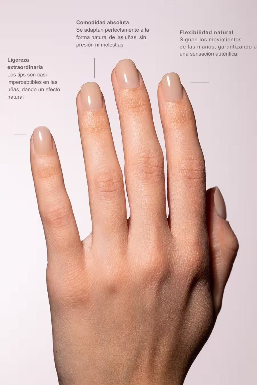 Tips Soft Gel Natural Cuadrada Redondeada Corta Nude